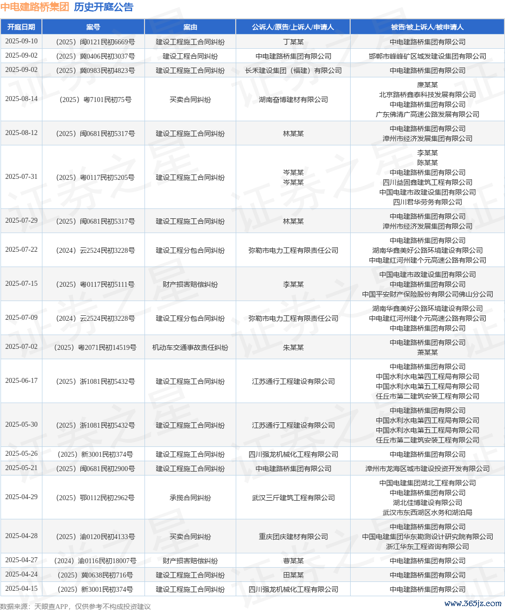 本站音信,闡明天眼查APP泄漏,近日公布了一則中電建路橋集團有限公司行為被告/被上訴東說念主的開庭公告,詳備實質如下: